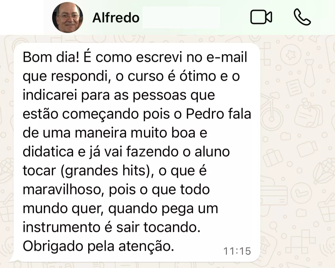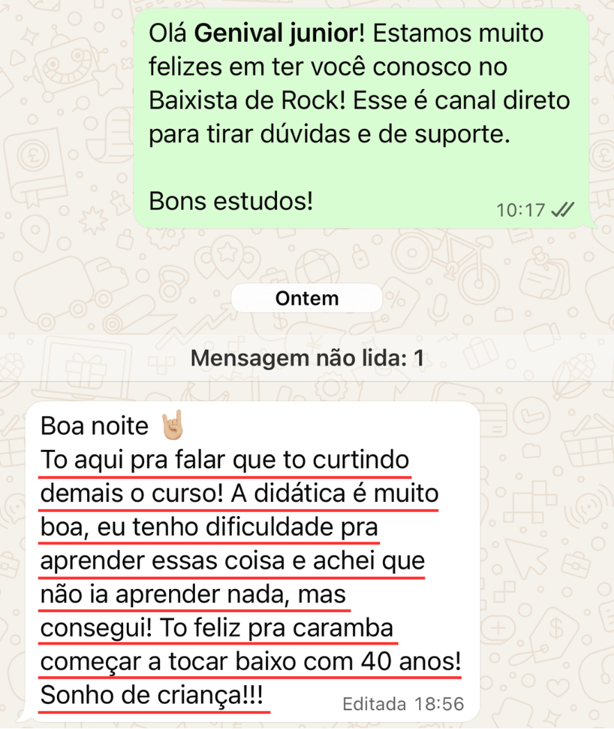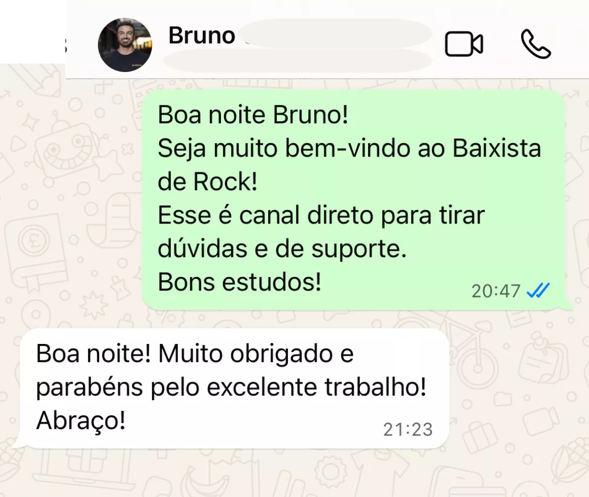 Nossas aulas eram muito dinâmicas, ele me apresentava coisas que eu já gostava de ouvir, me apresentava muitas coisas novas...me fez crescer muito e atuar hoje em dia com o baixo como minha profissão.